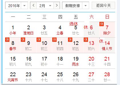 2016.2.6(农历腊月28)——2.14农历正月初七)放假共9天(规定放假7天;科冠放假2天(作为补休假:计假2天;若无休假资格员工,按休假处理。)按公司相关文件规定管理办法执行。
