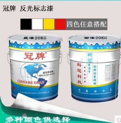 英文名称reflectorised paint;重庆反光漆【Fang Guan Qi];随着近几年铁路;公路的高速发展;反光漆的应用量逐渐增大;重庆反光漆厂家(科冠集团公司)每年反光漆的销售量也大有突破;2015年反光漆销售量220吨;产品应用与各省高速公路(隧道、桥墩、路沿、电线杆、收费岛;防撞栏、广告牌、警戒牌、护栏、公路、等);颜色—任意选择(红-黄-黑-白-绿-蓝);我公司生产的反光油漆,是全国质量较好的,附着力强、硬度好、反光强度高、安全环保、施工方便!本产品全部采用德国进口原浆材料,现已成功应用于许多交通设备的红绿灯线杆、中国电信的水泥线杆护墩,以及铁路道口的反光标牌制作等领域!